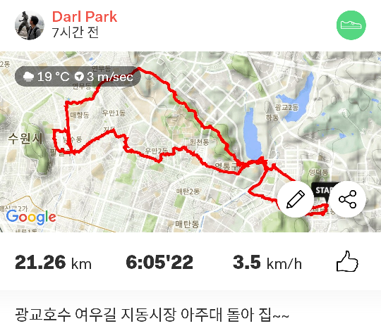꼬박 6시간 걸었네? ㅋ 3시에 출발했는데 집에 돌아오니 11시 넘었네 ~~