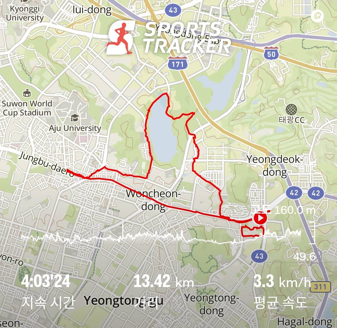 아주 천천히 무리하지않으려 리듬을 타면서 걸었더니 10시간도 더 걸을 수 있을 듯 가볍네